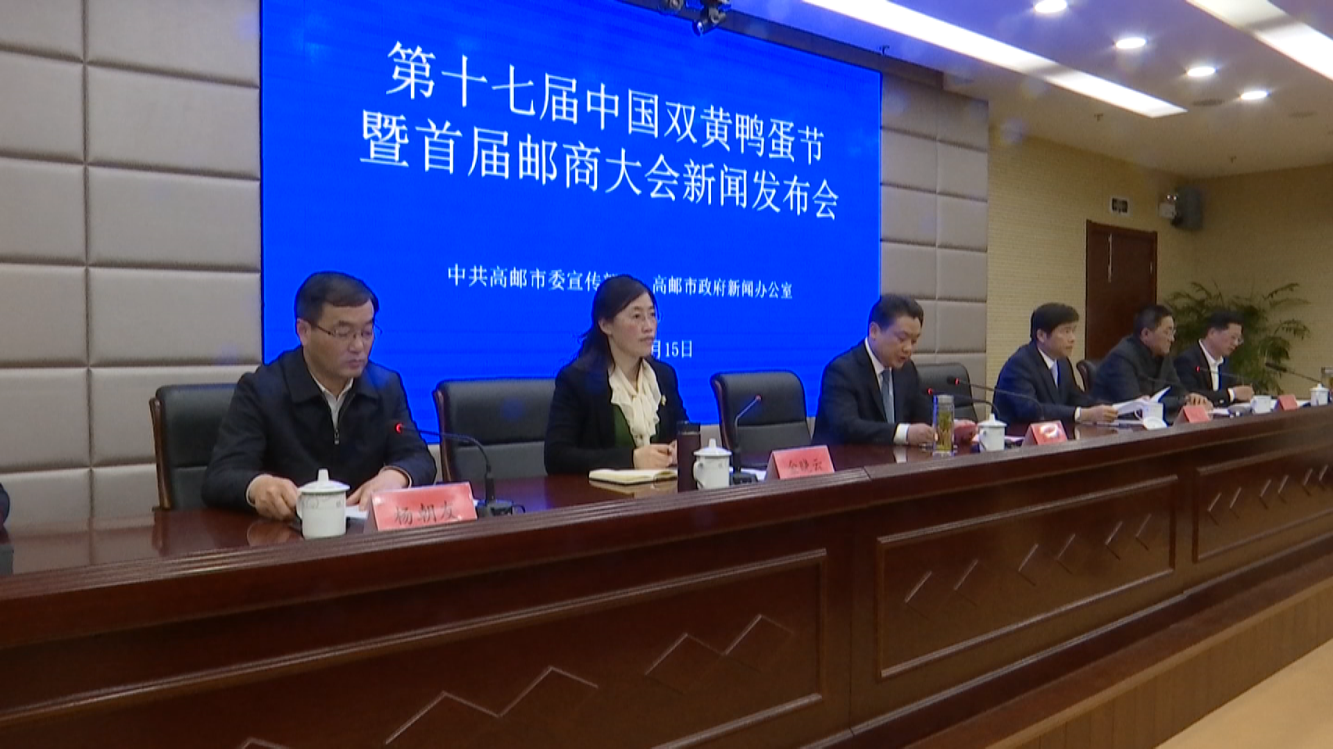 4月15日下午,高邮市委市政府举行新闻发布会,宣布“第十七届中国双黄鸭蛋节暨首届邮商大会”将于16日举行。