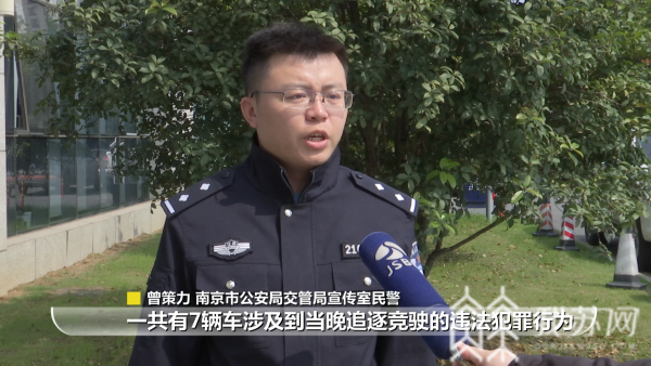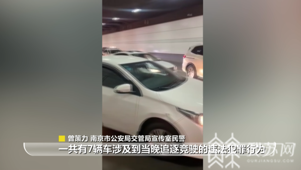 南京市公安局交管局宣传室民警曾策力表示,经过调查,一共有7辆车涉及到当晚追逐竞驶的违法犯罪行为。当天晚上,7名驾驶人聚集在白马公园,相约前往奥体中心附近进行飙车活动,在前往奥体中心途中,进入西安门隧道后,7辆车开始实施追逐竞驶的违法犯罪活动,其中有两辆车与正常行驶的社会车辆发生交通事故。