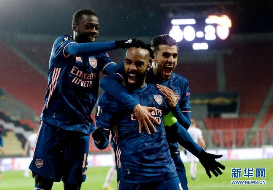 当日,在捷克布拉格进行的2020-2021赛季欧罗巴联赛四分之一决赛次回合比赛中,英超阿森纳队客场以4比0战胜捷甲布拉格斯拉维亚队,以两回合5比1的总比分晋级半决赛。