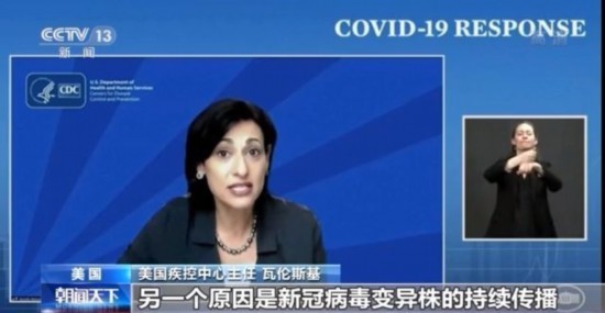 美国疾控中心主任 瓦伦斯基:美国疫情数据的恶化是不少州放松疫情管控措施的结果。例如,解除口罩令和允许餐厅开放室内就餐,另一个原因是新冠病毒变异株的持续传播。