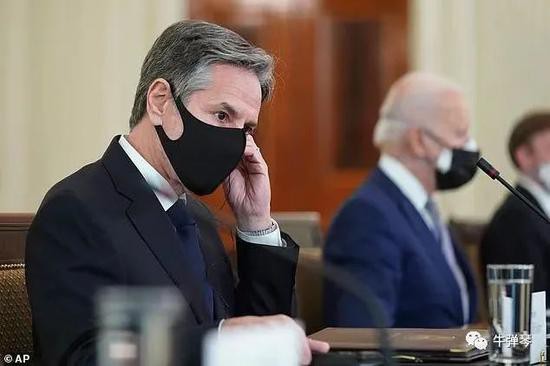 倒是国务卿布林肯,可能觉得两只口罩太不外交太不礼貌了,比较节省地戴了一只口罩。