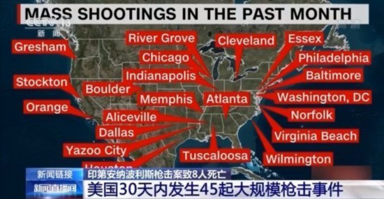 此次印第安纳波利斯发生的严重枪击案是短短三十天内,美国发生的第45起大规模枪击事件。枪支暴力始终是美国社会一大顽疾,而现在大规模枪击事件正以更高频率发生。