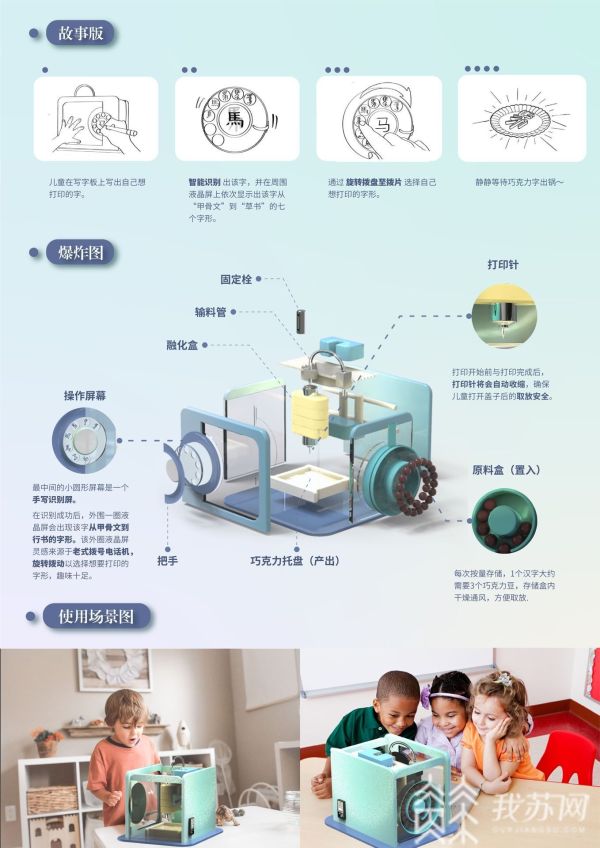 东南大学李佳昕团队“舌尖上的汉字”获得未来教育大学组一等奖,这是一款针对7到11岁具有初步认知力的儿童设计的汉字演变巧乐力3D打印机,通过打印巧乐力的方式吸引儿童在玩乐中学习中国汉字演变过程。东南大学艺术学院研一学生李佳昕告诉记者:“它把这种食品的打印机和汉字演变,这样一个文化进行结合,这是第一点的承载形式上,第二点就是人机交互方式上,儿童在书写汉字后可以选择哪个时期的汉字。”