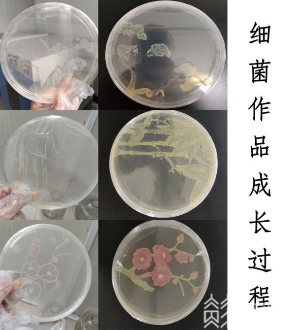 扬州工业职业技术学院艺术设计学院学生杨威龙说:“红色也是从土壤里提取的,但是它是有一定几率,可能只有1%到2%的样子。操作杆是很细的钢丝,我们在勾画的时候很难把握它的稳定,我大概画了5组作品,15幅图,采取了其中3幅,我们在这个过程中发现,我们结合生物和艺术就是一个不同的收获。”