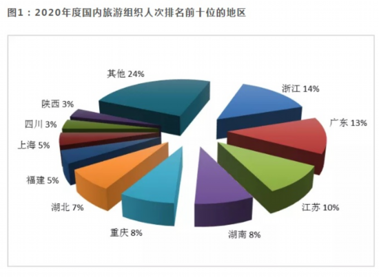 微信号“文旅之声”日前发布《2020年度全国旅行社统计调查报告》(下称《报告》)。《报告》显示,2020年度旅行社国内旅游接待人次排名前十位的地区由高到低依次为浙江、湖北、江苏、海南、贵州、广东、湖南、云南、安徽、福建。