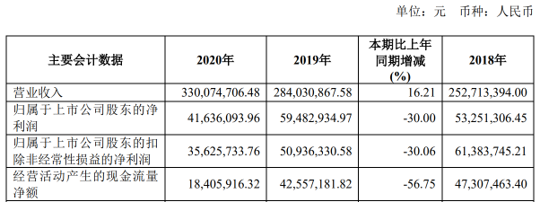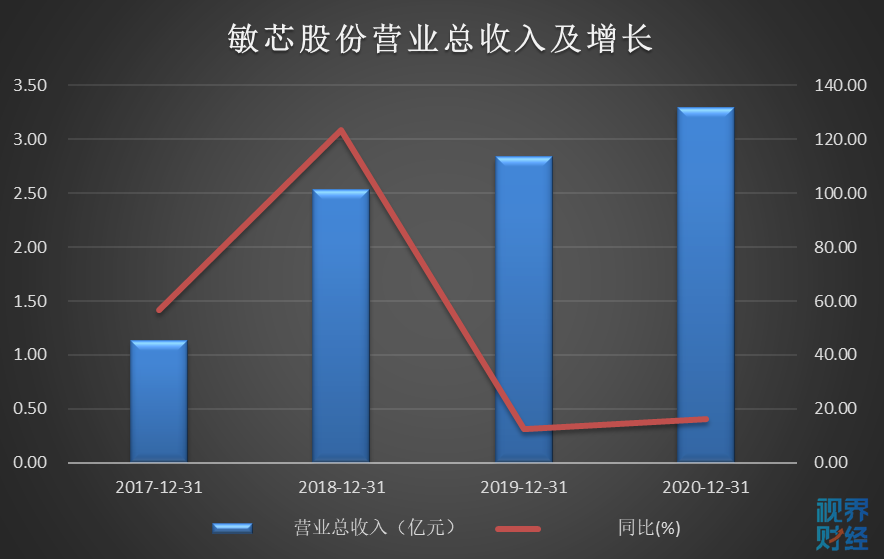数据显示,敏芯股份2020年实现营业总收入为33,007.47万元,同比增长16.21%。但增收不增利,归属于上市公司股东的净利润、归属于上市公司股东的扣除非经常性损益的净利润较上年同期分别减少30.00%、30.06%。