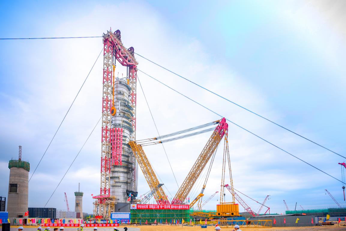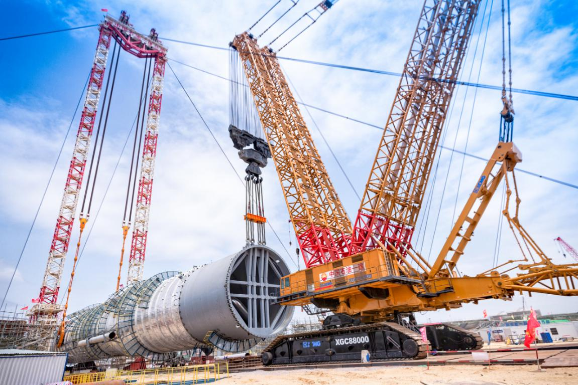 两大超强起重装备的首次合作,实现了超大型塔器吊装完全依靠我国自主装备完成,将中国吊装能力再一次推向一个全新的高度,同时也展现了中国制造与中国吊装的硬核实力。本次吊装工程的成功,是中国吊装历史性的时刻,不仅刷新了XGC88000四千吨级履带起重机进入市场应用以来的吊装纪录,更创造了国内乃至亚洲炼化行业整体吊装塔器的新纪录。