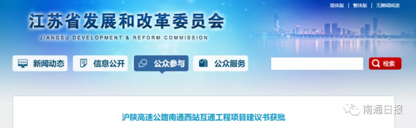 江苏省发改委网站14日发布消息,沪陕高速公路南通西站互通工程项目建议书获批。