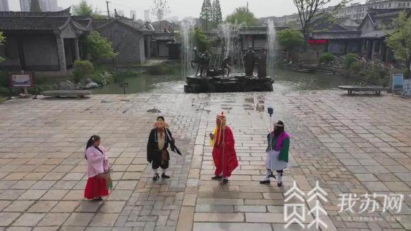 在吴承恩故居广场,伴随着悠扬的音乐声响起,国家级非物质文化遗产楚州十番锣鼓正在激情表演。