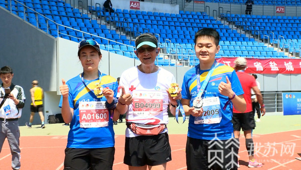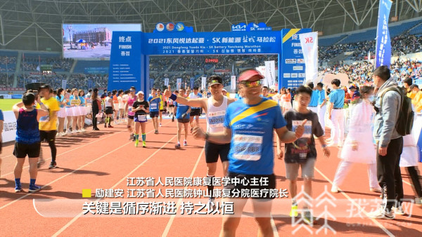盐城马拉松现场,几十位穿着一致的参赛者,引人注目。这是江苏省人民医院钟山康复分院的"钟山康复跑团",由医疗院长励建安、行政院长全钰平带队,在跑步中,践行"体医融合"、"运动是医药"的健康理念。