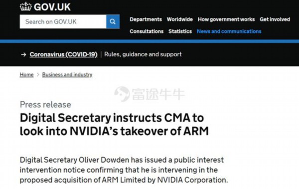 据英国政府网站发布的新闻稿,英国数字大臣(Digital Secretary)Oliver Dowden发布公共利益干预通知(public interest intervention notice),确认他正在干预英伟达收购AMR的提议。