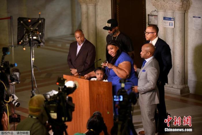 当地时间2020年6月2日,美国明尼苏达州,弗洛伊德的家人出席新闻发布会,弗洛伊德女儿的妈妈就其死亡发表讲话,现场泣不成声。