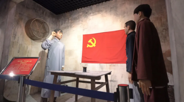 “1927年9月,中共江苏省委派曾入广州农讲所学习,直接受过毛泽东教诲,并在崇明从事过农民运动的陆铁强任海门县特派员,陆化名沈惠农,选择久隆镇北的沙家仓地区,开展农民运动。”倪冬艳在“革命火种厅”讲述时,展厅里的沙盘场景仿佛让人穿越到了那个动荡的年代。
