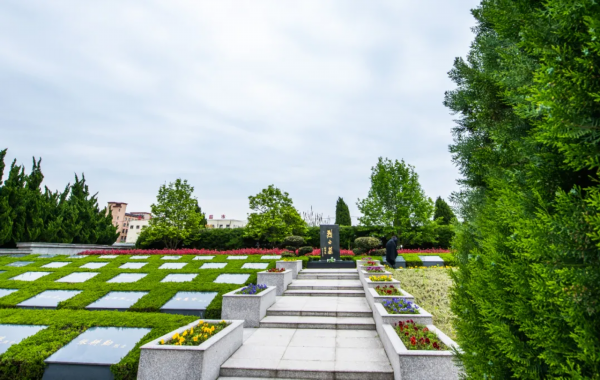 纪念馆东侧的烈士墓区,204名(其中167名为无名烈士)革命烈士的忠魂安息在鲜花绿草丛中,由姬鹏飞同志早年为启东烈士题写的“烈士墓”手迹嵌刻于烈士墓碑,矗立在墓群中央,墓碑前的几朵还带着露水的白菊仿佛在诉说着人们对他们的哀思。