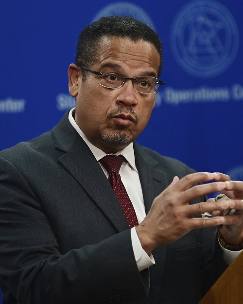 当地时间4月20日,明尼苏达州总检察长基思·埃里森(Keith Ellison)在弗洛伊德案的审判结果宣布之后召开发布会。