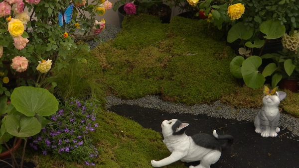 凭借着丰富的吉祥寓意,月季也常常出现在园林造景中。夺得大奖的造型月季"耄耋长春"中,猫咪、蝴蝶的摆件与"耄耋"谐音,与多个品种的月季共同构成一个小景观,祝福老人的生活长寿幸福。