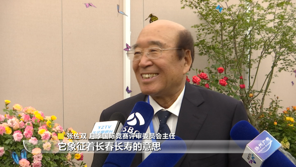 月季国际竞赛评审委员会主任张佐双介绍:“月季花在中国古代象征着长春长寿的意思,因为别的花一年开一次,它四季都开。开多次又象征着勤奋,花上有刺儿又象征有骨气,还象征着亲情、和平,深受老百姓的喜爱。像中国就有87个城市选它做市花。”