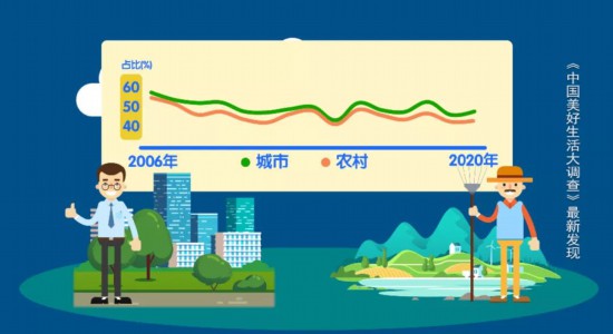 从居住地来看,十年来城里朋友的幸福感始终高于农村朋友。