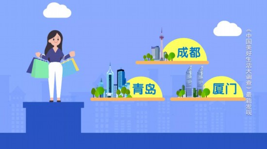 2020年,女性幸福感高的城市排名前三位是成都、青岛和厦门。