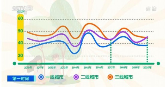 但三线城市居民的幸福感,除了2017年和2020年略低于二线城市外,其他时间一直明显高于一二线城市的居民。生活在小城市的居民普遍烦心事更少,生活得更惬意。