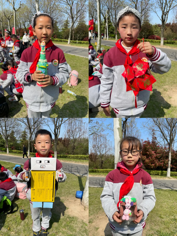 小朋友们在爸爸妈妈的帮助下,利用废弃物品,做出了各种装饰物。