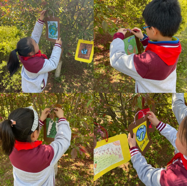 他们还将亲手制作的环保小标签挂在小树上的枝桠上,呼吁更多的人加入到保护环境的行动中来。