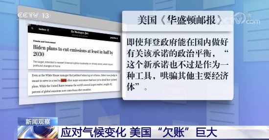 在领导人气候峰会开幕式上,美国总统拜登宣布扩大美国政府的减排承诺:到2030年将美国的温室气体排放量较2005年减少50%~52%,到2050年实现“净零”排放目标。但多家美国媒体似乎对此均不买账,在它们看来,美国在气候变化领域的欠账不会因为举办一次峰会、画一张“大饼”就能弥补回来。