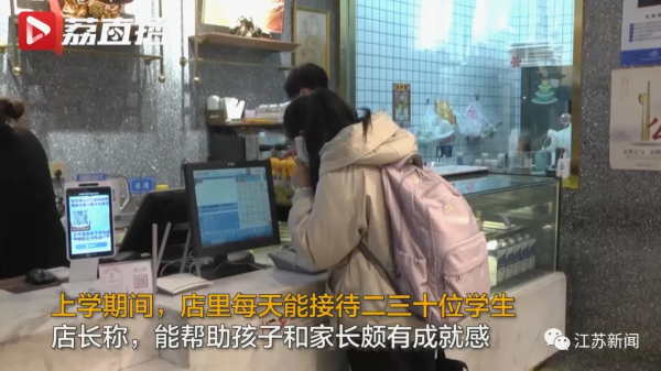 连云港一小学门口有这么一家面包店为等家长的学生提供免费电话,还可以进店坐着等家长,如今,这里已成为学生的“暖心驿站”。