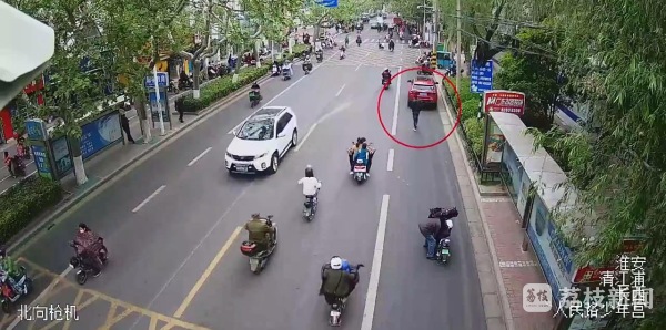 清江浦公安分局长西派出所民警梁梦辉介绍:“画面显示,当天中午11点27分左右,可以看到此时苏女士的红色轿车正停靠在路边,一名中年男子戴着口罩,手持一根甩棍从车后走来,等靠近后,男子突然用甩棍,猛地向车后玻璃砸了一下,这还没完,他又继续围着轿车一顿乱砸,很快就将轿车四周的车玻璃都砸坏了,直到附近的交警赶过来制止时,这名男子才停手。”