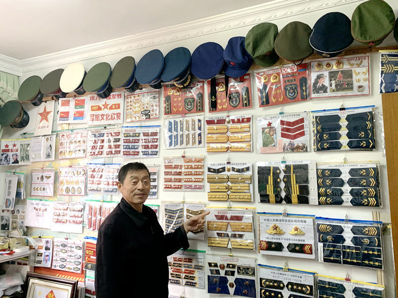 “8年前我就是因为这篇《小小军领章,圆我从军梦》开始军品收藏的。”无锡市新吴区硕放街道咏硕苑社区的党员曹解南说着,眼神中带着一丝自豪和满足。2012年,老曹打听到了这篇文章的作者地址,两人便开始了书信交流,成为了挚友。从此,老曹走上了军品收藏之路。在他不足10平米的书房里,墙上、柜子里和展架上整整齐齐摆放着近600件军衔肩章、帽徽、领花等收藏品。