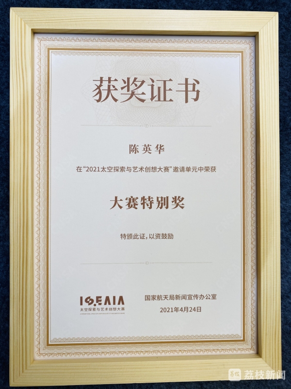 绣娘陈英华凭借“宇宙星空系列”作品从全球500位参赛艺术家中脱颖而出,不仅荣获“太空探索与艺术创想大赛”特别奖,获奖的系列作品还在“中国航天日”科普展主体展区正式展出,吸引了现场众多嘉宾的目光。“这是国家航天局第一次举办这样的艺术大赛,星空系列作品是本次大赛第一个也是唯一一个工艺美术类的获奖作品。”国家航天局新闻办公室相关负责人在采访中告诉记者。