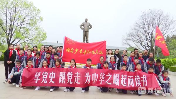 面对总理铜像,孩子们齐唱国歌,共同立下“为中华之崛起而读书”的铿锵誓言。在庄重的授旗仪式后,这些少先队员代表们正式开始了为期一天的 “淮安少年寻红色足迹”之旅。
