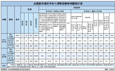 4月25日,中央纪委国家监委公布了2021年3月全国查处违反中央八项规定精神问题汇总情况。当月,全国各级纪检监察机关共查处违反中央八项规定精神问题6504起,批评教育帮助和处理9537人,其中党纪政务处分5855人。