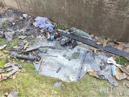 隔离墙背后的草地上,还有挡风玻璃残渣、后视镜碎片等事故车辆残骸,基本都已被烧焦,走近还能闻到烧焦的味道。记者找到的几个零部件生产日期写着2020年8月,距离事故发生不过半年时间。