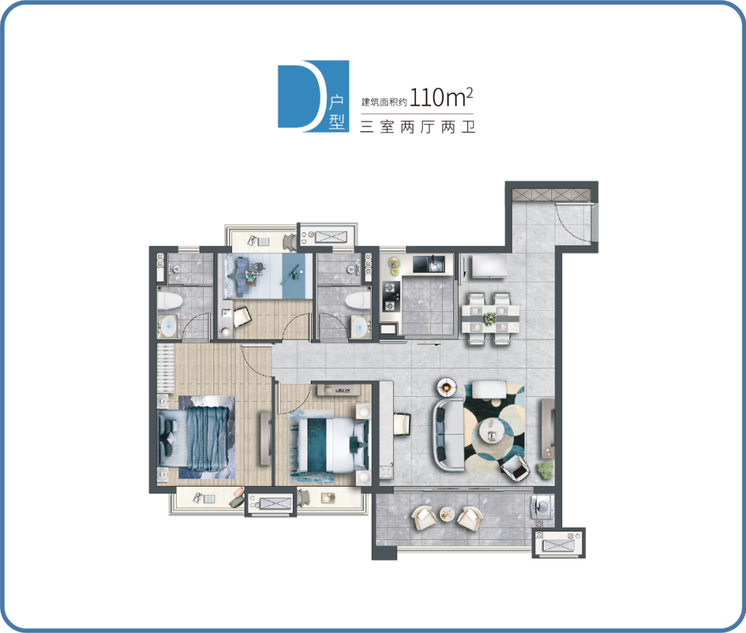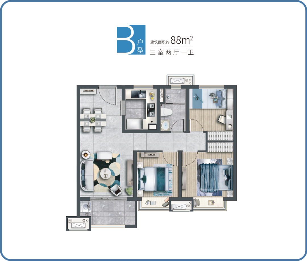 接下来,就来重点看下项目具有代表性的建面约88、110㎡户型。