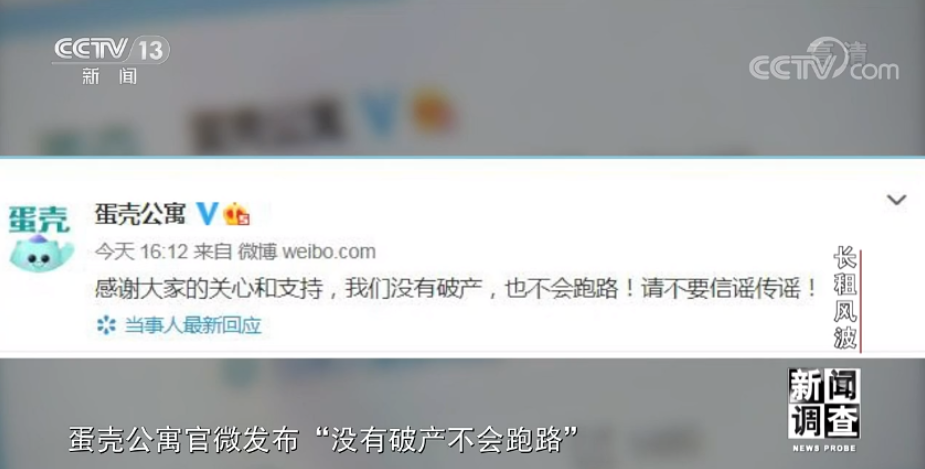 2020年11月16日,蛋壳公寓官微发布“没有破产,不会跑路”。一周后的11月24日,成都公司人去楼空。