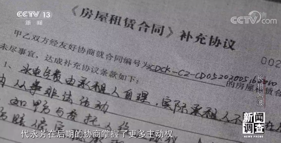 因为合同补充条款的存在,代永芳在后期协商中掌握了更多主动权。在社区和民警的帮忙协调下,受到影响的20个租户中,有7户选择直接搬离。另外13户分别接受了代永芳提出的解决方案,房租月付金额由之前的1230元降至700元,双方各承担一部分损失。