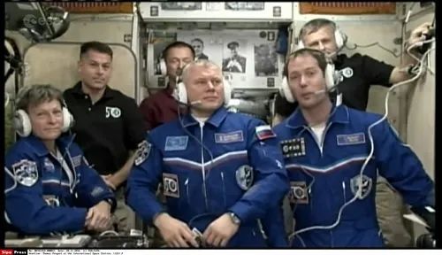 2016年11月20日,在国际空间站,来自欧洲、美国和俄罗斯的三位宇航员拍照。新华社/西霸