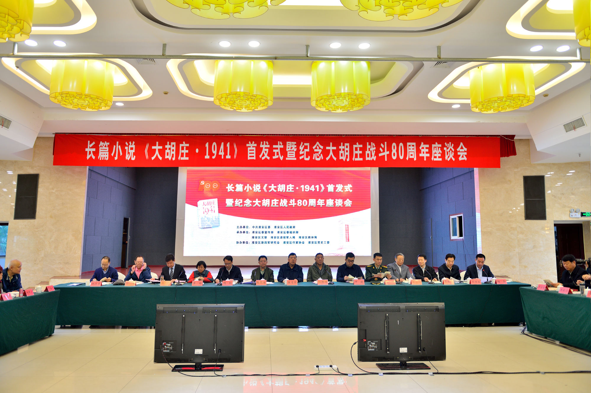 淮安区委书记张笑致欢迎辞并介绍了长篇小说《大胡庄·1941》创作策划背景。他说,当年这些年轻战士把生命留在了淮安大地上,很多人甚至连名字都没有留下,淮安人民不能让这些彪炳史册的名字成为湮没在时光深处的无名英雄。淮安区委区政府以时不我待的使命感和责任感,挖掘创作出这部革命战争题材的文学作品,来还原这段历史,借以告慰先烈,教育后人。