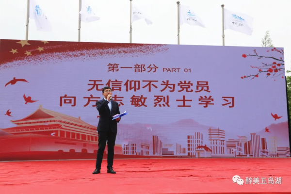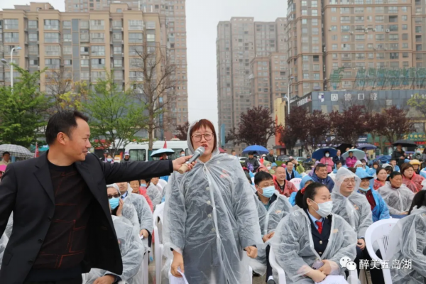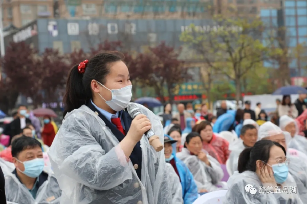 4月24日上午,春雨绵绵,“学党史 感党恩 听党话 跟党走”党史学习教育进万家活动,在涟水县五岛湖旅游区一品梅广场举办。