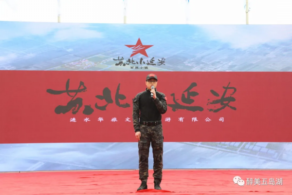 ▲苏北小延安军旅小镇负责人、涟水华旅文化旅游有限公司融合发展部总经理潘俊宁介绍苏北小延安军旅小镇概况及特色项目