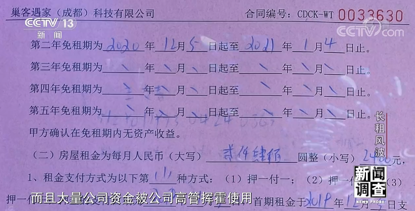 根据成都市高新区公安分局的侦查,“巢客遇家”通过利用“高进低出”“长租短付”的经营模式,吸纳了大量的租客资金,但从调取公司资金流水显示,其经营方式不仅无任何盈利点,而且大量公司资金被公司高管挥霍使用。