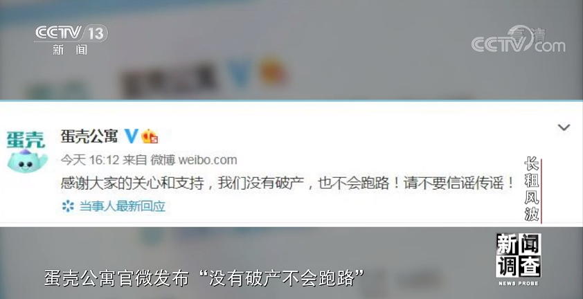 2020年11月16日,蛋壳公寓官微发布“没有破产,不会跑路”。一周后的11月24日,成都公司人去楼空。