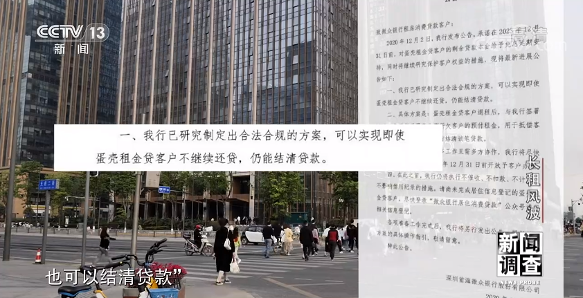 2020年12月4日,微众银行发布公告称,“可以实现即使蛋壳租金贷租客不继续还贷,也可以结清贷款。”