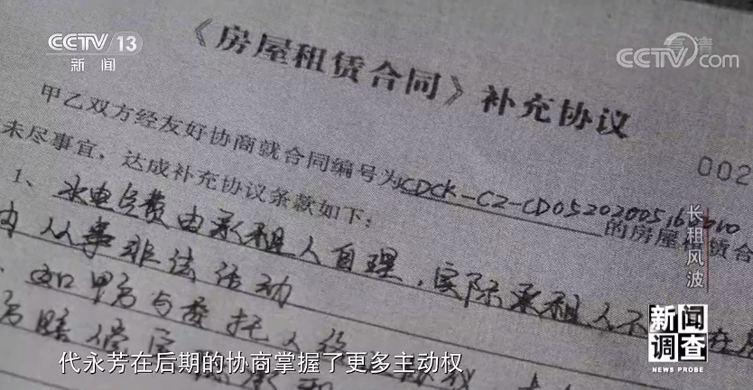 因为合同补充条款的存在,代永芳在后期协商中掌握了更多主动权。在社区和民警的帮忙协调下,受到影响的20个租户中,有7户选择直接搬离。另外13户分别接受了代永芳提出的解决方案,房租月付,金额由之前的1230元降至700元,双方各承担一部分损失。