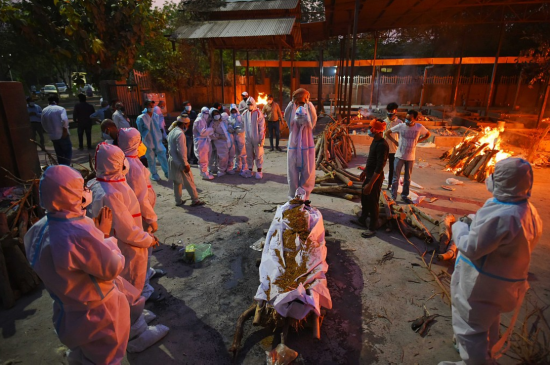 印度新德里,殡仪馆为新冠肺炎遇难者举行火葬(资料图)