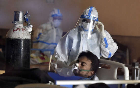 印度医生戈塔姆·辛格(Gautam Singh)对呼吸机短缺感到十分担忧,他认为这意味着医院氧气严重不足。他在工作时,总能听到绝望的患者因缺氧而挣扎痛苦的声音。截至26日,印度新增新冠病例连续五天刷新最高纪录,连续五天超过35万例。和其他印度各地医生一样,戈塔姆·辛格祈求能够借到足够的氧气瓶,哪怕只能让病人多活一天。25日晚,当附近其他医院的氧气供应也快要用尽时,这位绝望的医生在社交媒体发布了视频,情绪激动地求助,他哽咽说:“请寄给我们氧气,我的病人快死了。”
