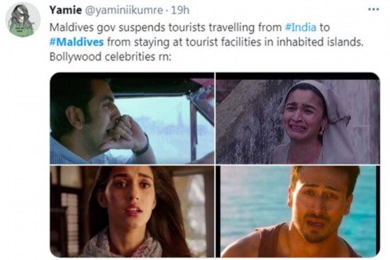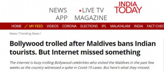 这一消息宣布后,报道称,社交媒体上充斥着对宝莱坞明星的不满。这些明星包括:扬薇·卡普尔、迪莎·帕塔尼和泰格·什罗夫。因为在印度新冠疫情处于最严重的危机之际,这些明星的社交媒体上却发布了来自马尔代夫的照片。报道称,甚至连感染新冠的宝莱坞明星兰比尔·卡普尔等,也在康复后立即飞往马尔代夫。