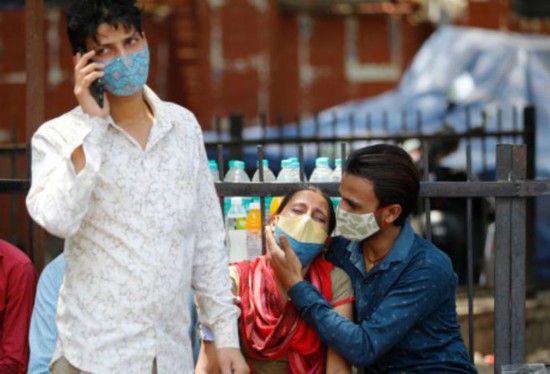 印度新冠病人的亲属在医院外等候。(资料图)