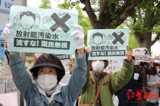 2021年4月13日,抗议者在日本东京的首相官邸外反对福岛核污染水排入大海。